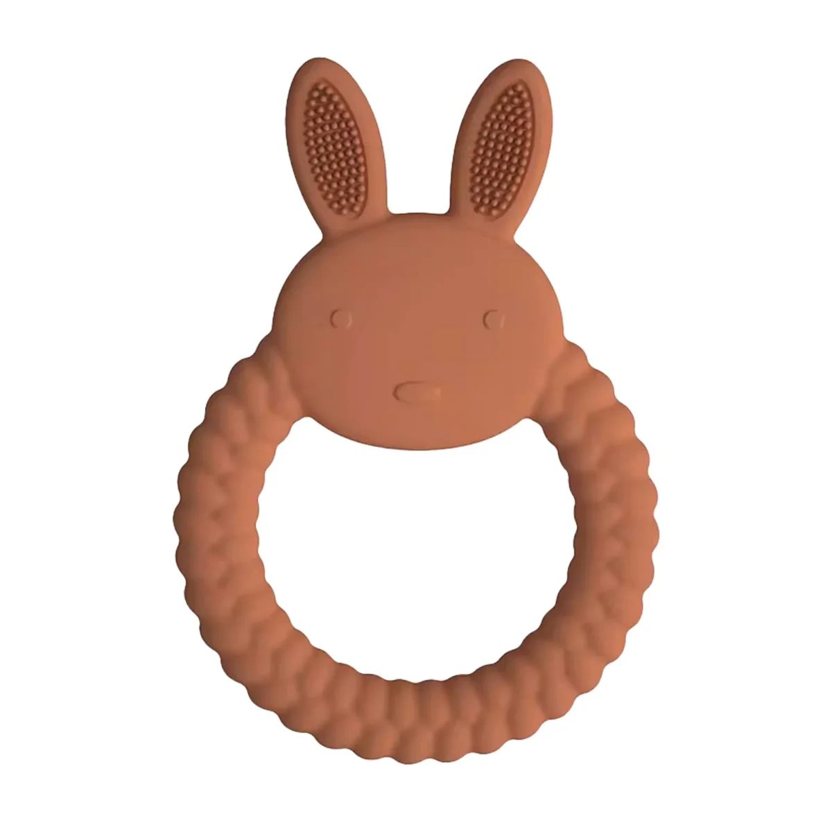 1x Bitey – Bijtring Konijn – Bijtspeeltje – Bijtspeelgoed – Baby speelgoed – Kraamcadeau – Babyshower cadeau – Vanaf 0 maanden Siliconen – Baby – BPA-vrij – Donkerbruin