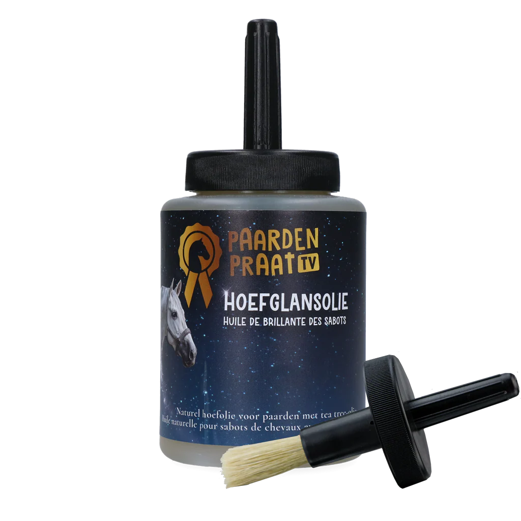 Hoefolie word al jaren gebruikt door veel paardeneigenaren en dit met een goede reden. Hoefolie geeft natuurlijke bescherming, voorkomt uitdroging en zorgt voor een verbetering van de conditie van de hoeven van het paard. De hoefglansolie van Paardenpraat is samengesteld door experts en natuurlijk uitgebreid getest door Paardepraat TV. Samen met deze professionals hebben we een selectie gemaakt van de beste hoefolie in combinatie met tea-tree olie. Deze combinatie zorgt ervoor dat de hoeven van het paard beschermd zijn tegen hoornkloven en afsplinteren. De unieke samenstelling van PaardenPraat TV Hoefglansolie zorgt ervoor dat deze snel intrekt, de hoef elastisch maakt, van binnenuit verzorgt en ook nog eens een mooie glans geeft.